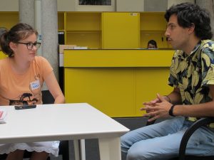 Les idées pour le Festival ne viennent pas de moi, il y a quelqu’un d’autre qui a les idées : par exemple, il y a le directeur artistique qui choisit les films, l’autre directeur qui va penser à toute la partie de l’organisation du Festival. Toutefois il faut que moi-même j’ai un peu de fantaisie pour faire mon travail : j’ai fait des interviews, comme toi, et don là j’ai dû penser aux questions et à la manière de conduire les interviews.